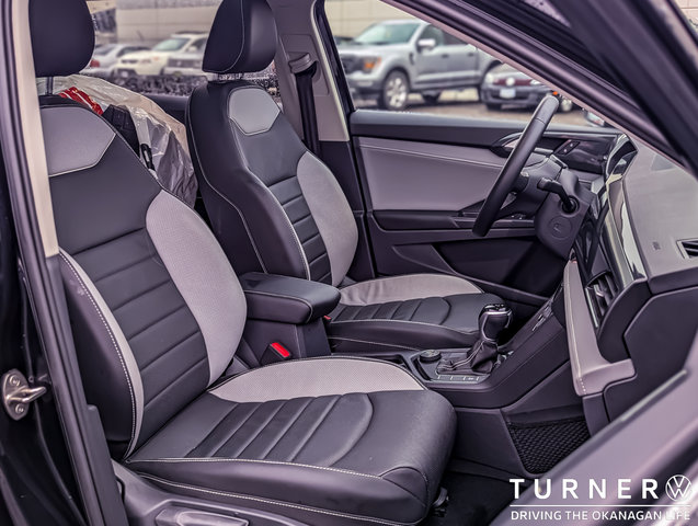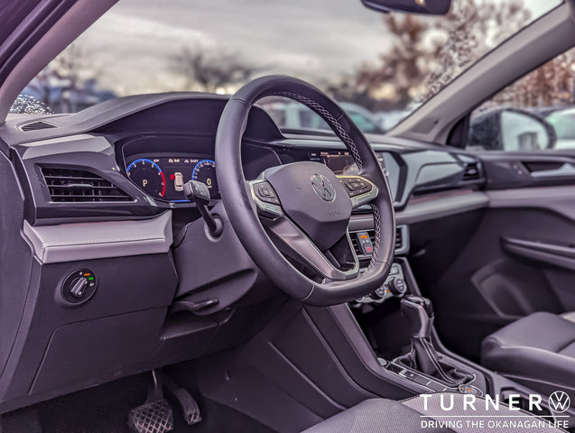 This Certified Pre-Owned 2023 Volkswagen Taos Highline has 35,049kms. It features a multi-tone Grey Leather interior and a 1.5L 4-Cylinder Gas Engine.